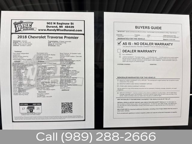 Discover the perfect blend of style, performance, and versatility with this stunning 2018 Chevrolet Traverse Premier. Boasting a sleek Red exterior and a host of premium features, this SUV is ready to elevate your driving experience.
