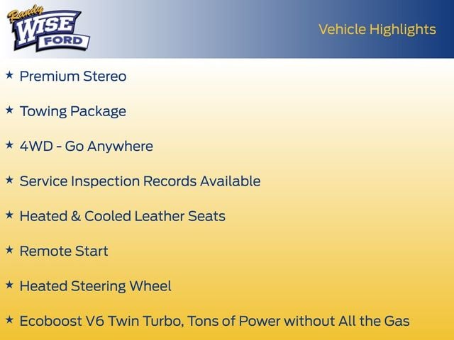 Performance & Safety: Powered by the punchy 2.7L V6 EcoBoost engine and features Ford Co-Pilot360 tech, including BLIS (Blind Spot Info System) and Lane Keeping System Window Sticker.